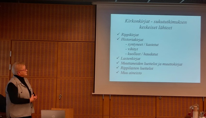 Minun Sääminkini iltapäiväkahveilla pääkirjasto Joelin Miitti salissa oli esitelmöimässä Savonlinnan seudun sukututkimusyhdistyksestä Raija Nuutinen.