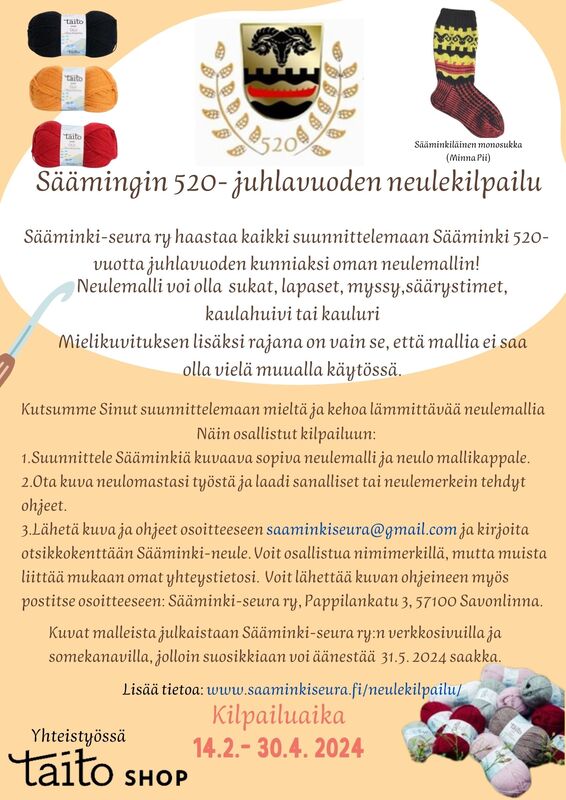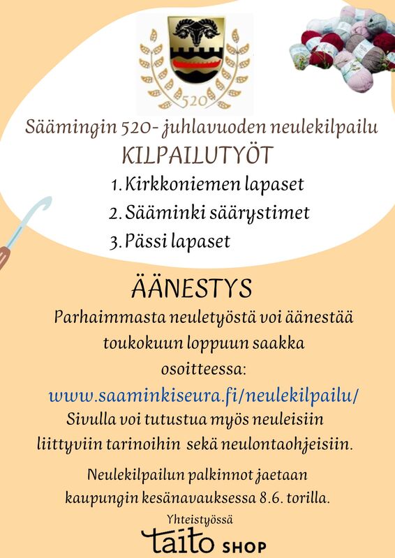 Säämingin 520- juhlavuoden neulekilpailu - ohjeistus