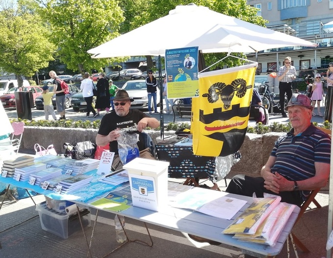 ![]() Sääminki-seura ry näyttävästi mukana kesän avaustapahtumassa Kauppatorilla. Varapuheenjohtaja Pekka Turtiainen ja hallituksen jäsen Vesa Luukkonen kertoivat kiinnostuneille Sääminki- seura ry;n toiminnasta ja tapahtumista. |