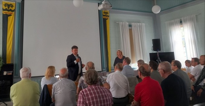 Tilaisuudessa läsnä helteestä huolimatta lähes täysi Sääminkitalon sali, joka saatiin viilennettyä siedettäväksi.
