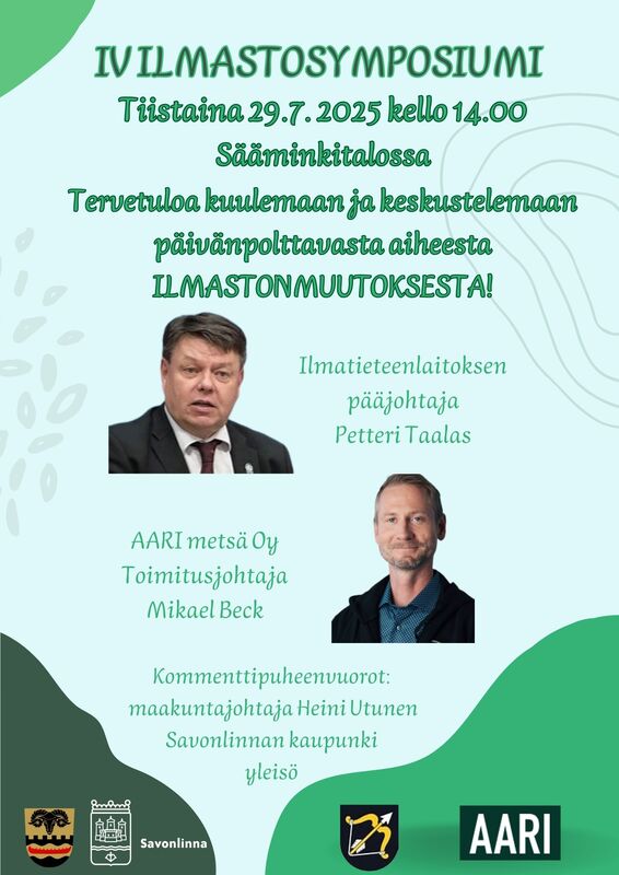 IV Ilmastosymposiumi 29.7. 2025 Sääminkitalossa.