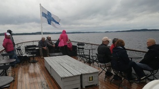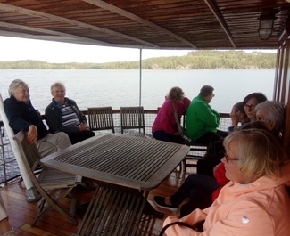 ![]() Vaihtelevasta säästä huolimatta voitiin nauttia Pihlajaveden kauneudesta s/s Saariston yläkannella. |