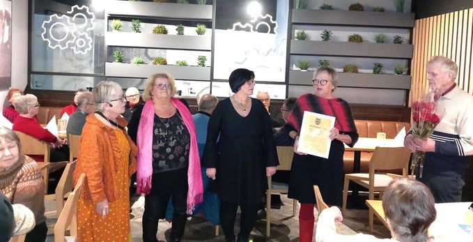 Juotiin nisukahvit Nuorisoseura Ruusun talolla Ruusulassa, jossa paikan emäntä Aino Tiainen kertoi ns. Ruusun synnystä ja Kiviapajan kuulumisista. Hienossa kunnossa oleva, talkoilla ylläpidettävä vuonna 2025 100- vuotta täyttävä nuorisoseurantalo Ruusula henkii historiaa sekä elää vahvasti ajassa.