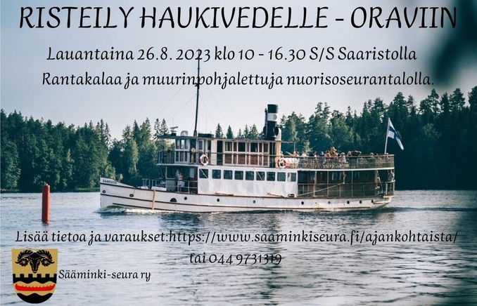 Sääminki-seura ry järjestää risteilyn Haukivedelle lauantaina 26.8. 2023.