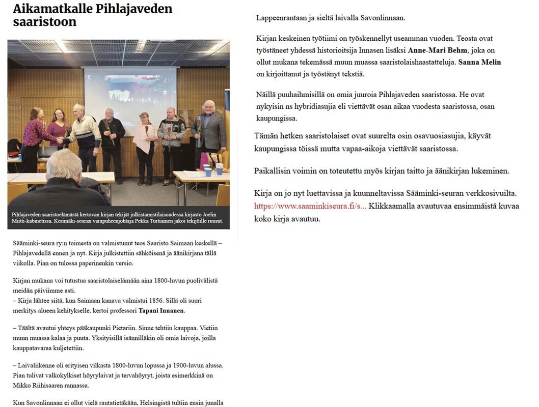 Saaristo Saimaan keskellä - Pihlajavedellä ennen ja nyt.